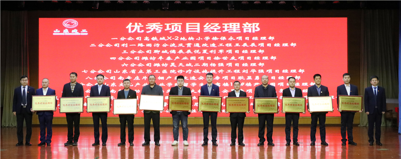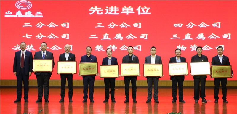 會議第二階段是2022年先進集體和先進個人表彰儀式,集團黨委副書記張方明宣讀表彰決定。集團主要領導分別為先進單位、先進部室、優秀項目經理部、優秀分包商、勞動模范、先進生產工作者頒獎。