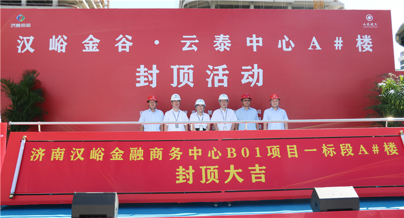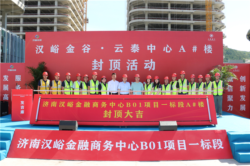 8月23日上午9時,集團承建的漢峪金谷·云泰中心A#樓喜封金頂。濟南高新智慧谷投資置業(yè)有限公司董事長兼總經(jīng)理常艷麗;濟南高新智慧谷投資置業(yè)有限公司副總經(jīng)理、濟南東禾置業(yè)有限公司總經(jīng)理駱虎;濟南高新智慧谷投資置業(yè)有限公司投拓總監(jiān)費世俊;營特國際工程咨詢集團有限公司副總經(jīng)理金永滿;山東建工集團副董事長師厚紀(jì);山東建工集團副總經(jīng)理、安全總監(jiān)蘇世凱等領(lǐng)導(dǎo)出席儀式,與項目建設(shè)者一同見證這激動人心的時刻。