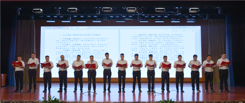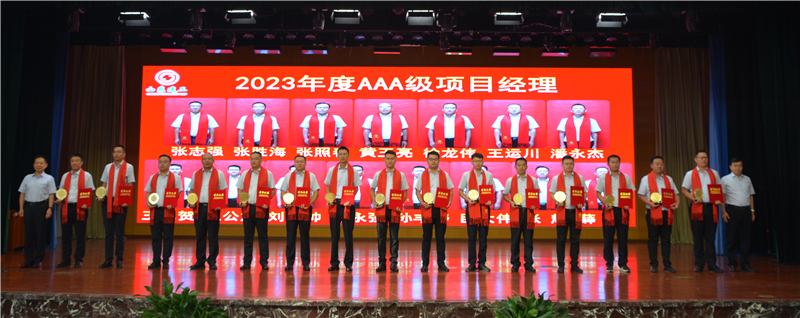 會議第二階段是表彰儀式,集團(tuán)副董事長師厚紀(jì)宣讀表彰決定,集團(tuán)領(lǐng)導(dǎo)分別為AAA級項目經(jīng)理部、AAA級項目經(jīng)理頒獎。AAA級項目經(jīng)理集體誦讀《集團(tuán)項目經(jīng)理行為規(guī)范》。