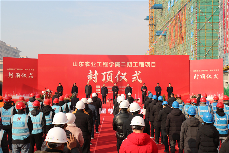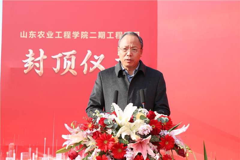 儀式上,淄博市項目建設工作專班副主任耿慶永,集團黨委書記、董事長王彥宏,山東農(nóng)業(yè)工程學院黨委委員、副院長周吉鵬等領導致辭。山東農(nóng)業(yè)工程學院張鴻波書記宣布項目封頂。