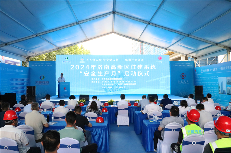 儀式上,集團(tuán)王彥宏董事長、濟(jì)南高新智慧谷投資置業(yè)有限公司董事長兼總經(jīng)理常艷麗分別致辭;高新區(qū)規(guī)劃建設(shè)部副部長劉嘯鵬宣讀《2024年濟(jì)南高新區(qū)住建系統(tǒng)“安全生產(chǎn)月”活動實(shí)施方案》;與會全員觀看“安全生產(chǎn)月”主題宣傳片《暢通生命通道》,濟(jì)南前沿科創(chuàng)基地項(xiàng)目應(yīng)急救援演練視頻和《塔機(jī)自動駕駛系統(tǒng)》應(yīng)用宣傳片。高新區(qū)黨工委委員、管委會副主任李濤講話。最后,與會領(lǐng)導(dǎo)共同啟動2024年濟(jì)南高新區(qū)住建系統(tǒng)“安全生產(chǎn)月”活動。